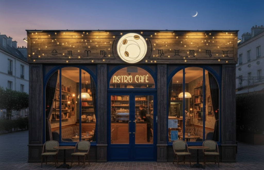 Astro Café se positionne comme un sanctuaire urbain où l’art ancestral de l’astrologie rencontre le rituel quotidien du café de spécialité.